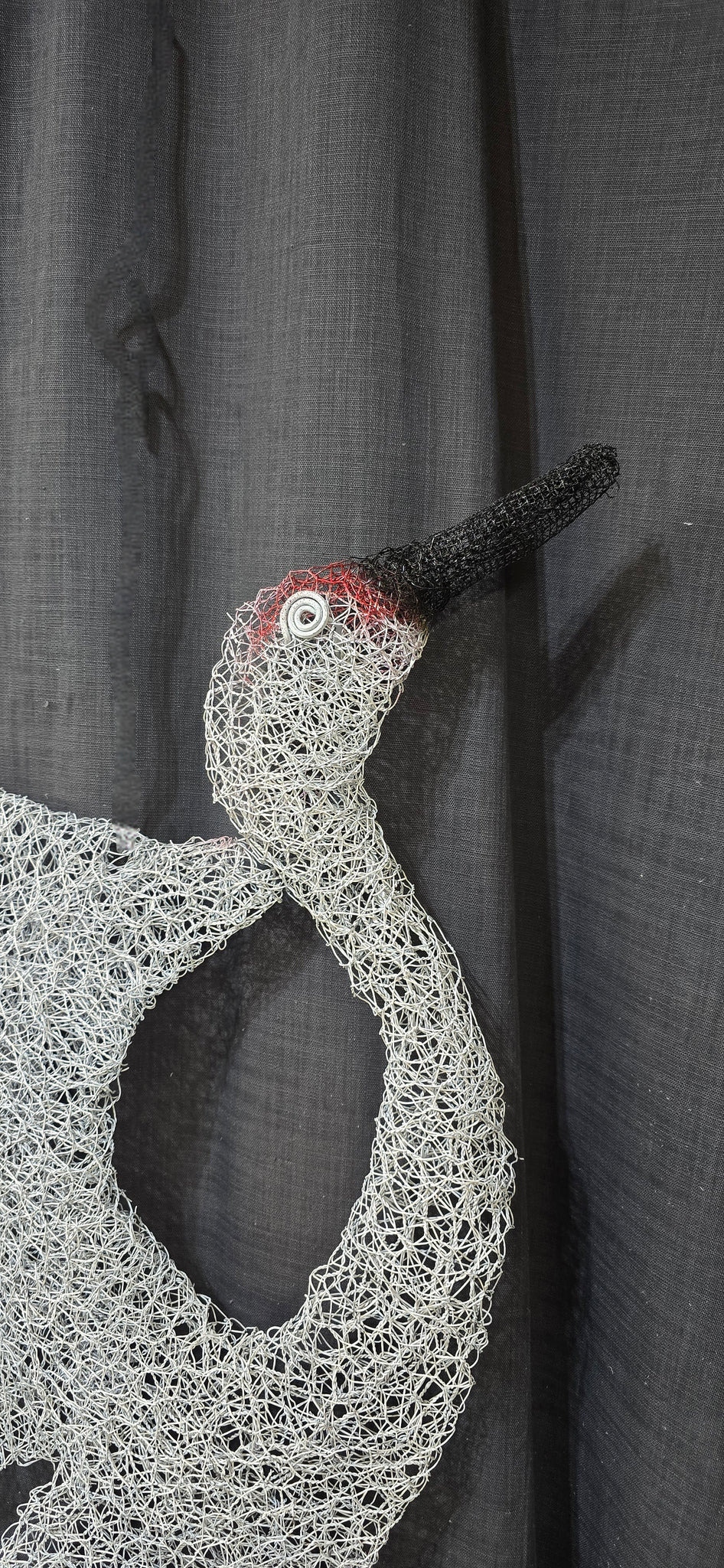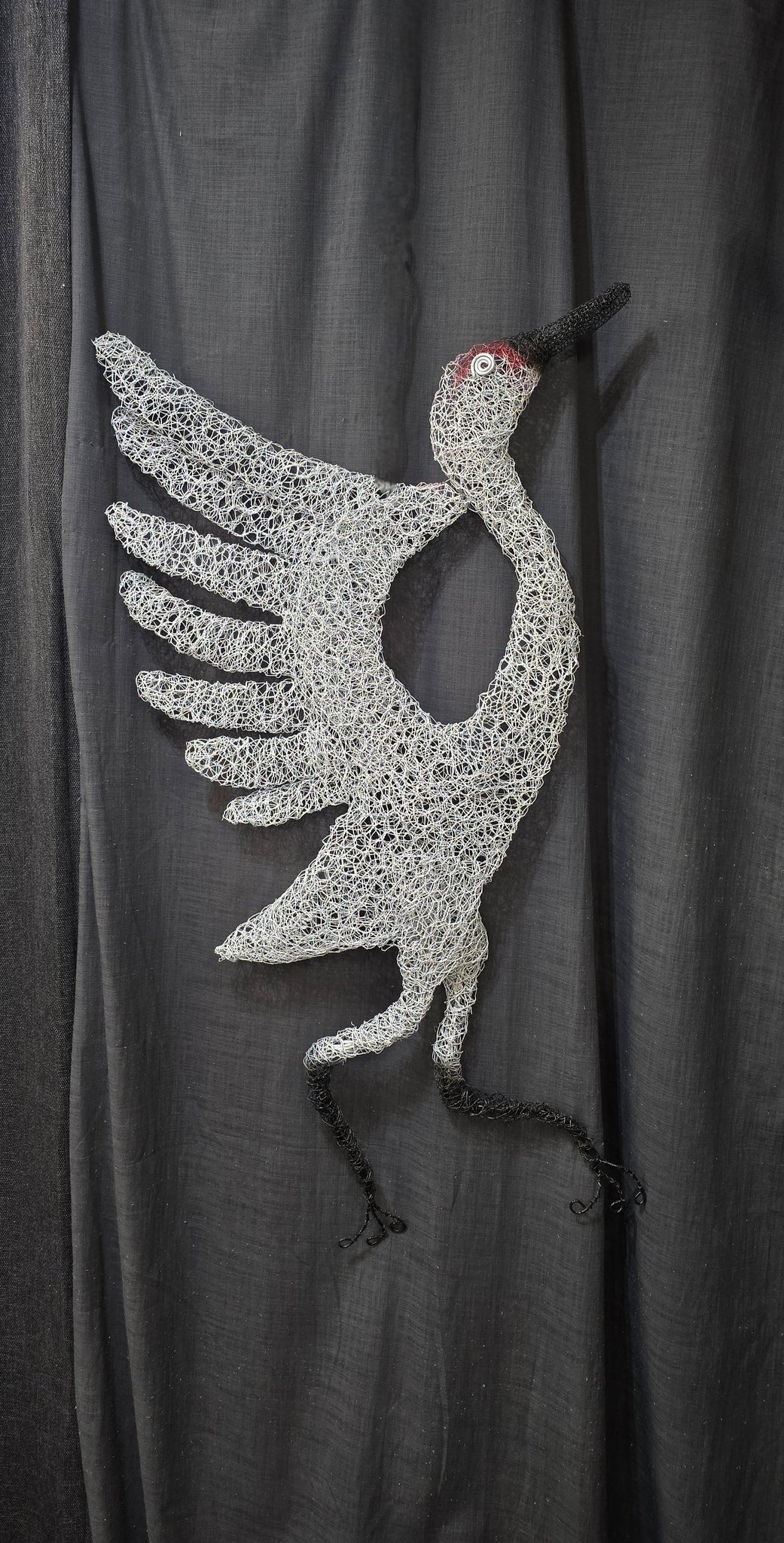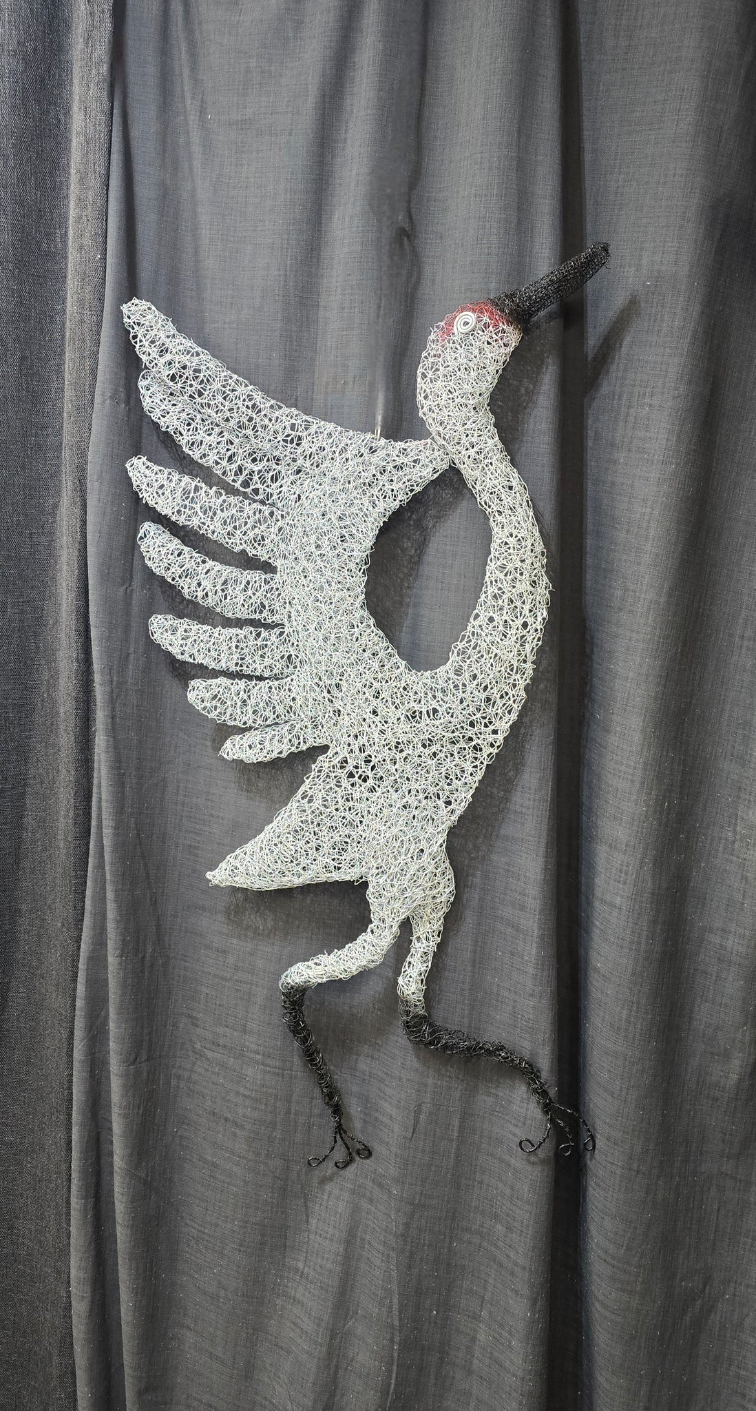 This Chicken wire Whooping Crane captures attention with its big beautiful sweep of wings. It is approximately 36" T x 20" W.