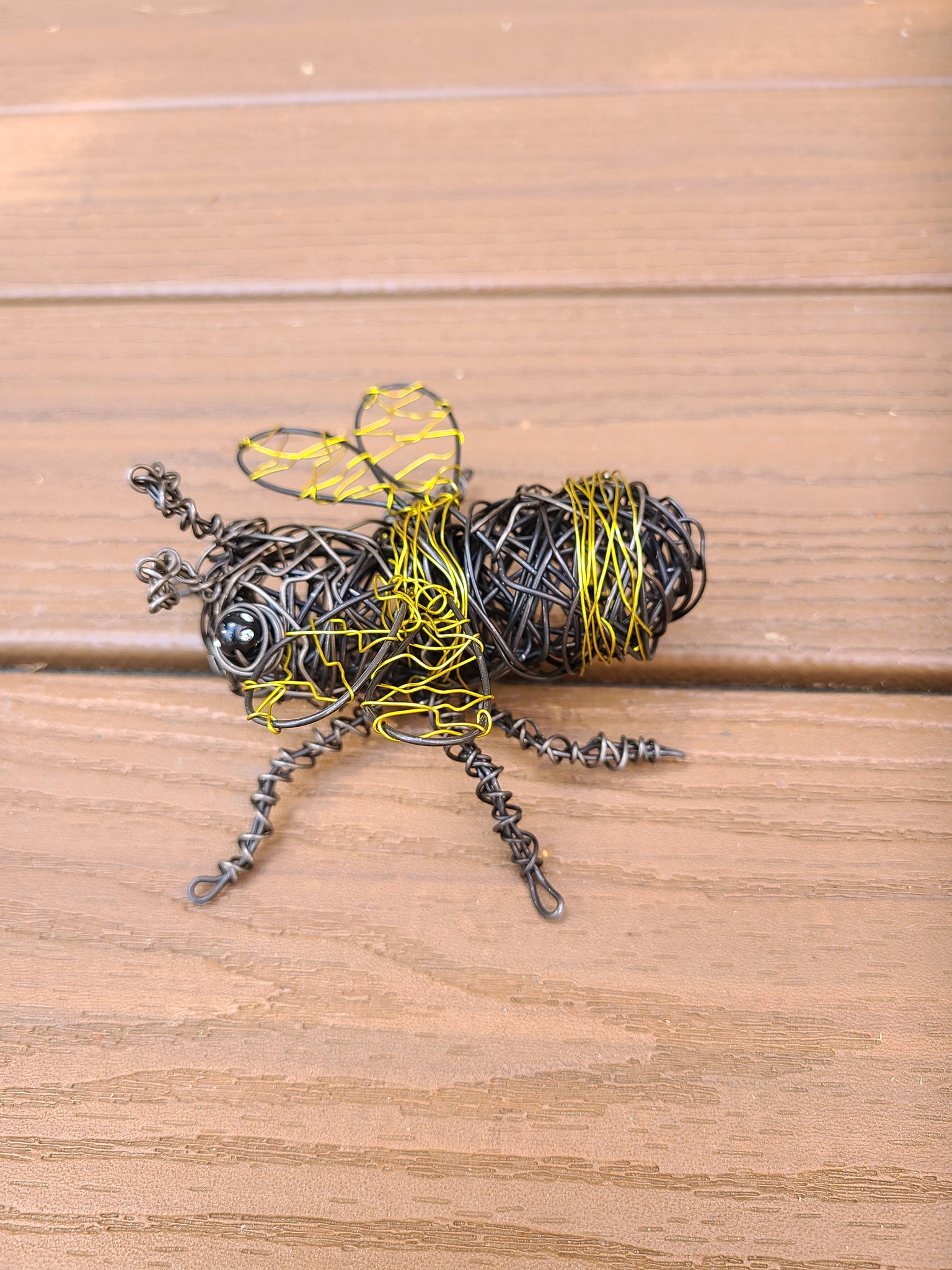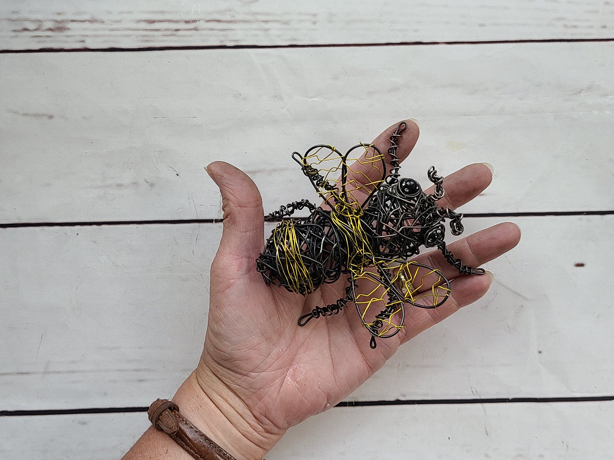 This sweet little Honey Bee is about 4.5 inches long and is inspired by the Art challenge for my Rusty Critters which began as a way to not go bonkers during the 1st Covid Shutdown of 2019. I clear coat this cutie to retain his colors however you can put him out in your garden and watch as his rusty color and tarnish on the brass deepens with exposure to the elements. He is definitely one of my favorites in my Critters collection.